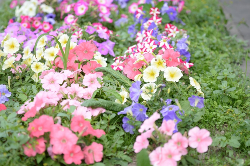 会社に接した植樹桝に、色鮮やかなペチュニアの花を植栽しました。