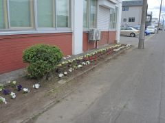 会社に接した植樹桝に、色鮮やかなペチュニアの花を植栽しました。
